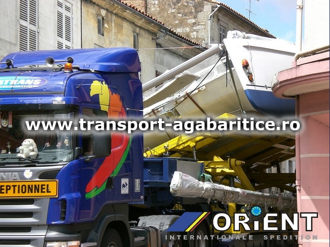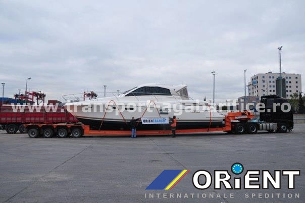 Transport barciORIENT® efectuează servicii de transport agabaritic barci de mari dimensiuni, fiind una dintre singurele companii din România acreditată să efectueze transport agabaritic de marfă ÎN TOATE ŢĂRILE Uniunii Europene, INCLUSIV ANGLIA, DEŢINÂND PERMISE DE TRANSPORT PENTRU ÎNTREG ANUL (Anglia, Italia, Spania, Austria, Germania, Belgia, Ungaria).